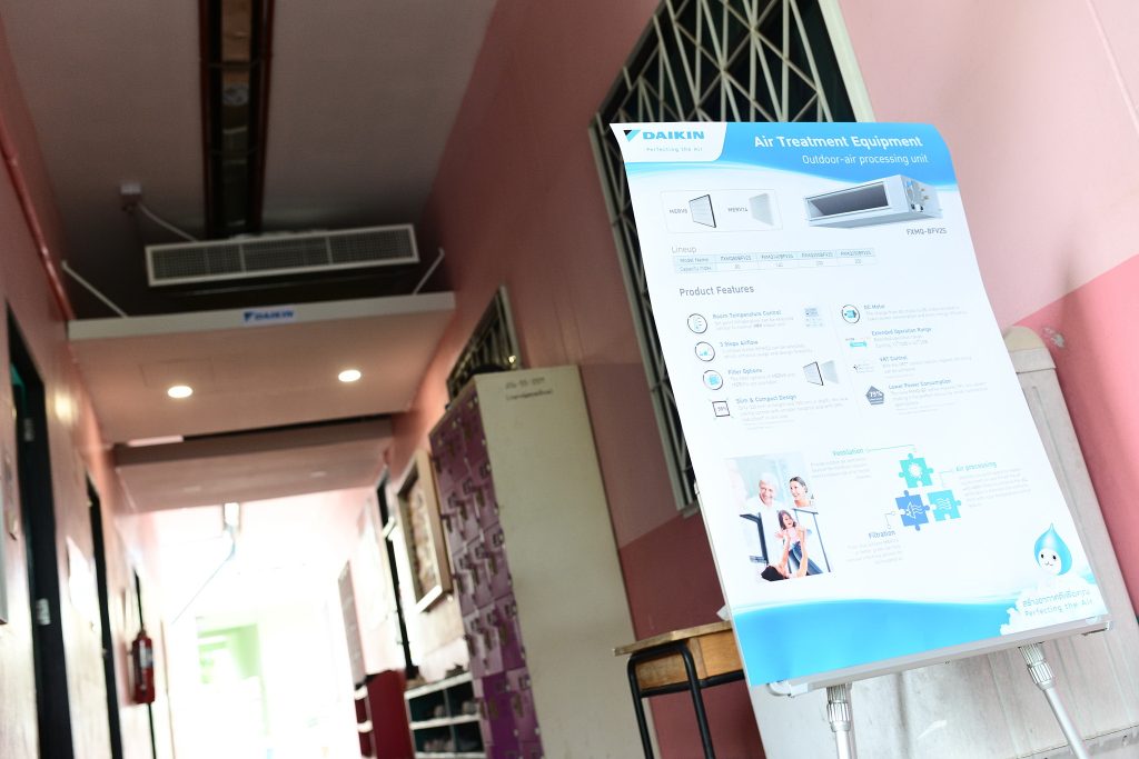 ในการส่งมอบครั้งนี้ ไดกิ้นได้ติดตั้งระบบปรับอากาศและระบบระบายอากาศที่มีประสิทธิภาพสูง สามารถช่วยลดปริมาณฝุ่นละอองขนาดเล็ก PM2.5 และก๊าซคาร์บอนไดออกไซด์ที่เกินค่ามาตรฐาน พร้อมทั้งเสริมด้วยชุดเติมอากาศบริสุทธิ์ (Outdoor Air Processing Unit: OAPU) และเซ็นเซอร์ตรวจวัดคุณภาพอากาศ เพื่อให้ครูและผู้ดูแลสามารถเฝ้าระวังได้ทันทีผ่านระบบแบบเรียลไทม์ นอกจากนี้ ยังได้มอบเครื่องฟอกอากาศ Daikin จำนวน 2 เครื่อง เพื่อใช้งานในห้องเรียนจริง ถือเป็นการยกระดับคุณภาพอากาศในศูนย์พัฒนาเด็กเล็กแห่งนี้อย่างครบวงจร
