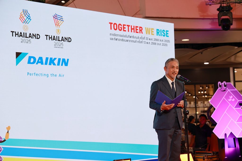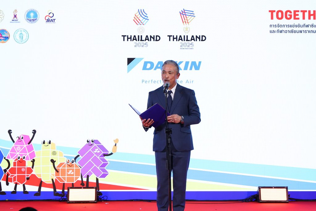 นายสึโทมุ คุริฮารา ประธานบริษัท ไดกิ้น อินดัสทรีส์ (ประเทศไทย) จำกัด กล่าวว่า เพื่อสะท้อนถึงความมุ่งมั่นของการแข่งขันที่ให้ความสำคัญกับความยั่งยืน การสนับสนุนครั้งนี้ ไดกิ้นได้นำแนวคิด “Perfecting the Air สร้างอากาศดีเพื่อคุณ” มาสู่การปฏิบัติจริง ด้วยโซลูชันด้านอากาศที่ล้ำสมัย ไม่เพียงแค่สร้างความสะดวกสบาย ไดกิ้นยังมุ่งสร้างสภาพแวดล้อมที่ดีต่อสุขภาพซึ่งช่วยพัฒนาศักยภาพและประสิทธิภาพด้านร่างกาย พร้อมเชื่อมโยงนักกีฬาและแฟน ๆ เข้าด้วยกัน ภายใต้สโลแกน “Breathe as One”