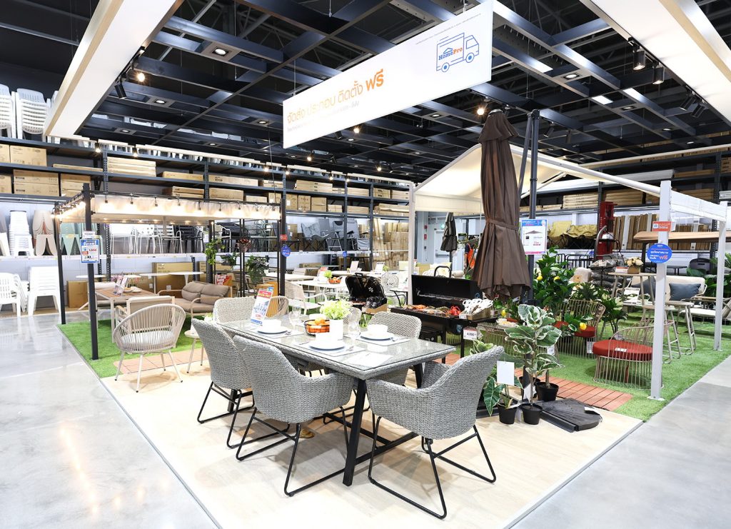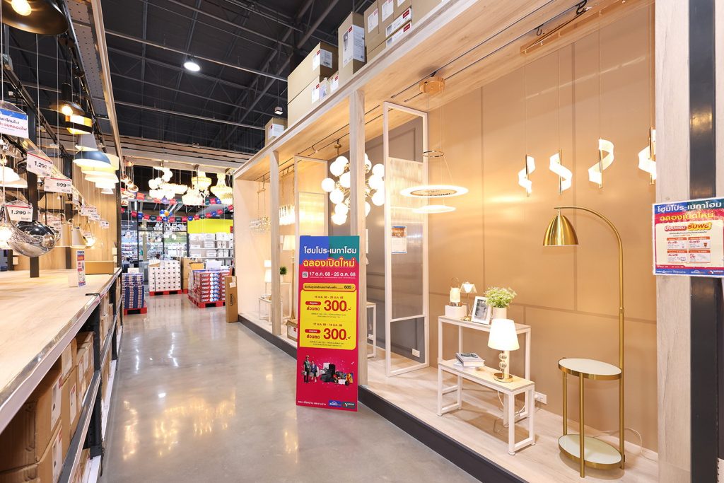 โฮมโปร x เมกาโฮม พุทธมณฑลสาย 4 ใช้งบลงทุนกว่า 570 ล้านบาท บนพื้นที่รวมกว่า 13,277 ตร.ม. วางบทบาทเป็น ศูนย์กลางที่คนทำบ้านและคนทำงานช่างได้มาเจอกัน ด้วยพื้นที่ขายสองโซนที่ออกแบบมาให้เชื่อมต่อกันอย่างลงตัว ผสานแรงบันดาลใจจากไลฟ์สไตล์คนเมืองเข้ากับอุปกรณ์การทำงานจริง ไม่ว่าจะเป็นพื้นที่ห้องตัวอย่างดีไซน์ตอบโจทย์คนเมือง ไปจนถึงพื้นที่ให้ลูกค้าได้สัมผัสของแต่งบ้านจริง ทั้งเฟอร์นิเจอร์ เครื่องใช้ไฟฟ้า เครื่องนอน รวมถึงแผนกห้องครัว และห้องน้ำที่มีครบทุกองค์ประกอบ เส้นทางช้อปยังเชื่อมต่อสู่โซนวัสดุก่อสร้างขนาดใหญ่ ครบทั้ง เหล็ก ปูน สี ระบบน้ำ–ไฟ และเครื่องมือหนักที่ช่างและโรงงานใช้จริง พร้อมมีทีมที่ปรึกษาและทีมช่างโฮมโปร – มือโปรประจำบ้านคุณ ที่คอยดูแล ให้คำแนะนำ ออกแบบ และเลือกสเปกสินค้าได้แบบครบวงจร ในรูปแบบ One Stop Shopping ภายในยังออกแบบพื้นที่บริการให้รองรับลูกค้าทุกกลุ่ม ตั้งแต่พื้นที่จอดรถที่รองรับได้เกือบ 200 คัน โซนรับ–ส่งสินค้าใกล้ประตู เพื่อความสะดวกในการขนส่ง ไปจนถึงจุดพักผ่อนด้วยร้านอาหารและร้านเครื่องดื่มชั้นนำ สะท้อนแนวคิดของโฮมโปรในการสร้าง “ประสบการณ์ช้อปที่คล่องตัวและคิดเผื่อครบทุกความต้องการ” ของลูกค้าอย่างแท้จริง