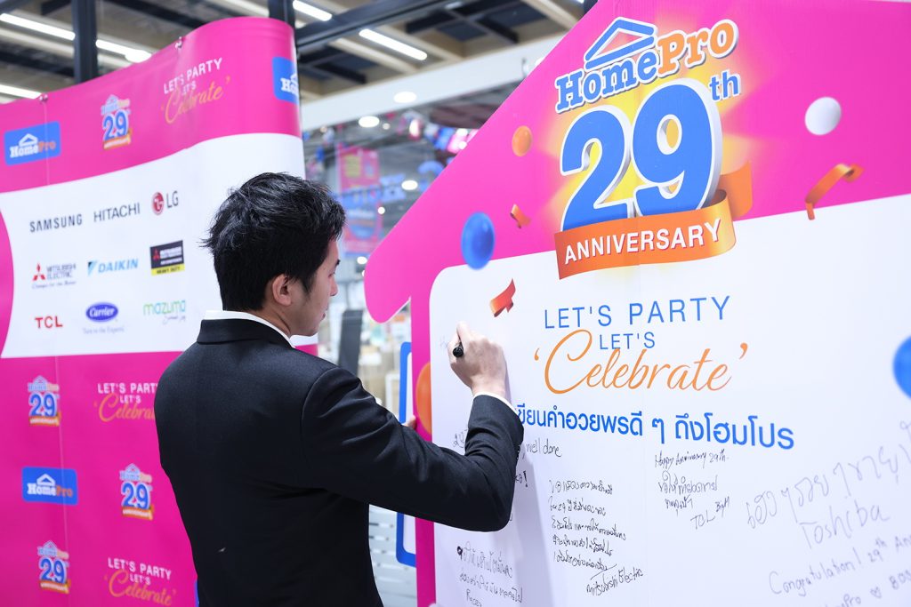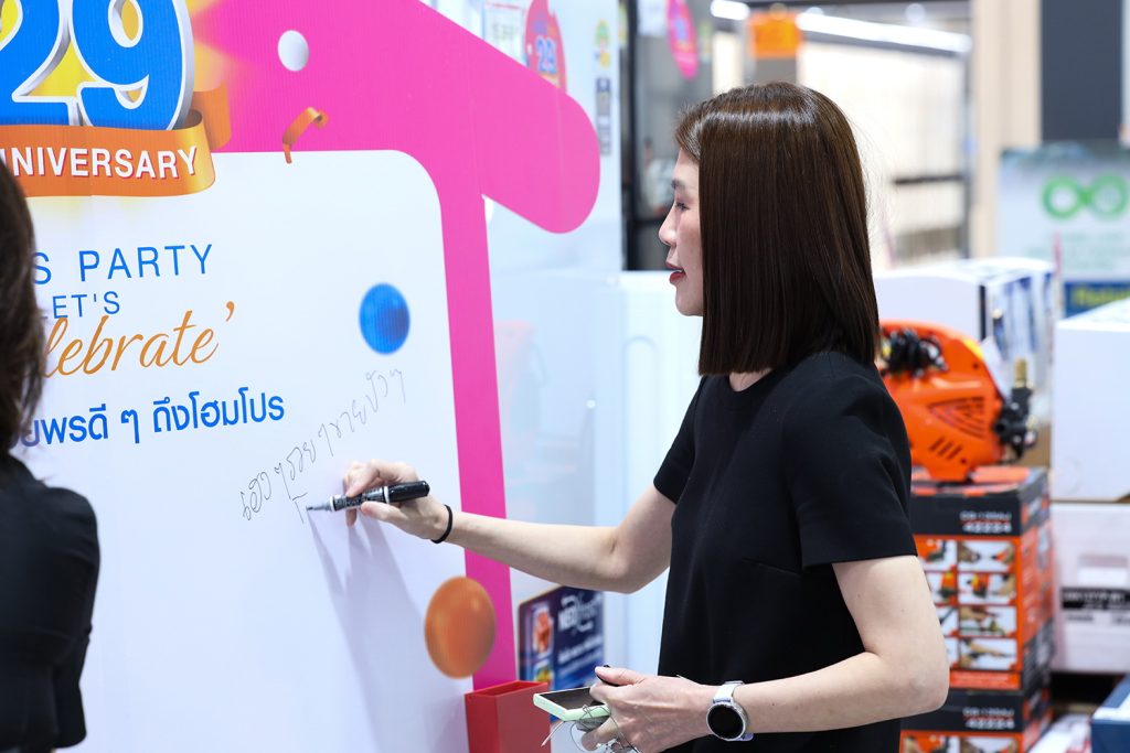 นางอุไรวรรณ ตันติพิริยะกิจ ผู้อำนวยการกลุ่มปฏิบัติการ บริษัท โฮม โปรดักส์ เซ็นเตอร์ จำกัด (มหาชน) หรือ “โฮมโปร” กล่าวว่า “ตลอด 29 ปีที่ผ่านมา ความสำเร็จของโฮมโปร ไม่ได้สะท้อนเพียงระยะเวลาของดำเนินธุรกิจเท่านั้น แต่คือ ‘ความไว้วางใจ’ ที่ลูกค้าและพันธมิตรมีให้เราเสมอมา ในโอกาสครบรอบ 29 ปีนี้ โฮมโปรต้องการส่งต่อคำขอบคุณผ่านสิ่งที่ลูกค้าสามารถสัมผัสได้จริง ทั้งความคุ้มค่าทุกการช้อป การใช้ชีวิตในบ้านที่ดีขึ้นกว่าเดิม และโอกาสลุ้นรางวัลใหญ่ที่มอบให้จากใจ นี่คือช่วงเวลาที่ดีที่สุดของปี สำหรับใครที่กำลังเตรียมอัปเกรดบ้านให้ดียิ่งขึ้น ด้วยดีลสุดคุ้มที่เราตั้งใจออกแบบมาเป็นของขวัญให้กับลูกค้าทุกคน”