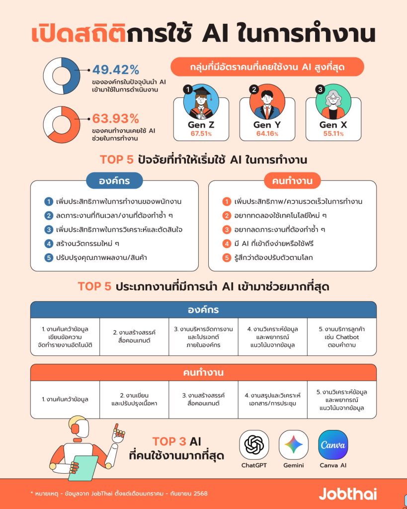 Uncategorized » JobThai ชี้ตลาดแรงงานปี 2568 “AI – ไลฟ์สด” แรงไม่หยุด Reskill คือกุญแจคนทำงานยุคใหม่