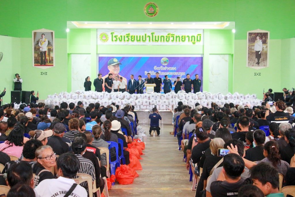 วันพุธที่ 12 พฤศจิกายน 2568 นายอนุทิน ชาญวีรกูล นายกรัฐมนตรี และรัฐมนตรีว่าการกระทรวงมหาดไทย พร้อมด้วย นายภราดร ปริศนานันทกุล รัฐมนตรีประจำสำนักนายกรัฐมนตรี นายสุรศักดิ์ พันธ์เจริญวรกุล รัฐมนตรีว่าการกระทรวงการอุดมศึกษา วิทยาศาสตร์ วิจัยและนวัตกรรม พล.ท.อดุลย์ บุญธรรมเจริญ รัฐมนตรีช่วยว่าการกระทรวงกลาโหม นายศักดิ์ดา วิเชียรศิลป์รัฐมนตรีช่วยว่าการกระทรวงมหาดไทย และคณะ ลงพื้นที่ติดตามสถานการณ์อุทกภัยในพื้นที่ จังหวัดอ่างทอง โดยมีนายชวนินทร์ วงศ์สถิตจิรกาล ผู้ตรวจราชการกระทรวงมหาดไทย รักษาการในตำแหน่งผู้ว่าราชการจังหวัดอ่างทอง รายงานสถานการณ์อุทกภัยในจังหวัดอ่างทอง พร้อมด้วย นายองอาจ แสนอุบล ผู้อำนวยการสำนักงานชลประทานที่ 10 นายสงกรานต์ ชะลอศรีทอง ผู้อำนวยการสำนักงานชลประทานที่ 12นายพิษณุ ช่วยเวช ผู้อำนวยการสำนักงานก่อสร้างชลประทานขนาดใหญ่ที่ 12 คณะผู้บริหาร และเจ้าหน้าที่ที่เกี่ยวข้อง ร่วมให้การต้อนรับและมอบถุงยังชีพให้กับประชาชนที่ได้รับผลกระทบจากอุทกภัยจำนวน 1,500 ชุด ณ โรงเรียนปาโมกข์วิทยาภูมิ ตำบลป่าโมก อำเภอป่าโมก จังหวัดอ่างทอง