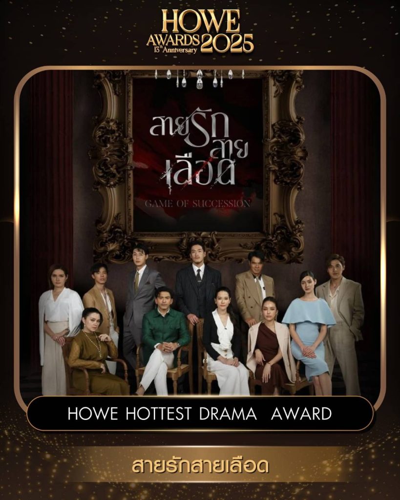 ทางด้านละครดราม่าสุดเข้มเข้นแห่งปี “สายรักสายเลือด” ได้คว้ารางวัล HOWE HOTTEST DRAMA AWARD 2025 ไปครองอย่างสมศักดิ์ศรี ขณะที่ “หนุ่ม กรรชัย” ผู้ประกาศข่าวจากรายการเที่ยงวันทันเหตุการณ์ และพิธีกรรายการโหนกระแส คว้ารางวัล HOWE POPULAR MC AWARD 2025 ซึ่งเป็นรางวัลสำหรับบุคคลที่มีความสามารถด้านการพูดและเป็นที่ยอมรับของประชาชน