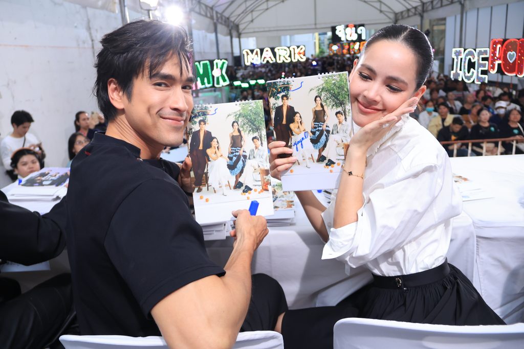 บรรยากาศภายในงานอบอุ่นและสนุกจนหยุดยิ้มไม่ได้ เพราะนอกจากเหล่านักแสดงจะมานั่งแจกลายเซ็นแบบใกล้ชิดแล้ว ยังพากันปล่อยมุกเด็ดสลับกันแบบไม่มีพัก ทั้งแกล้งหยอกเพื่อน มุกแซวแฟนคลับ ไปจนถึงมุกล้อกันเองบนเวที ทำแฟน ๆ ส่งเสียงกรี๊ดและเสียงหัวเราะแบบรัว ๆ เรียกได้ว่าอบอุ่น ฟิน และฮาในงานเดียวครบทุกอารมณ์ งานนี้สองพิธีกร สายฝน ชีช้าง และ เป็นไต๋ นัฐนิช รับหน้าที่ดำเนินความสนุกแบบจัดจ้าน แถมยังให้เหล่าซุปตาร์แต่ละคนโชว์ความน่ารัก จนเกิดโมเมนต์สุดน่ารักไม่หยุด ทั้งแกล้งถาม แกล้งแซว ทำให้บรรยากาศตลอดงานเต็มไปด้วยเสียงหัวเราะและพลังบวกไม่ขาดช่วง