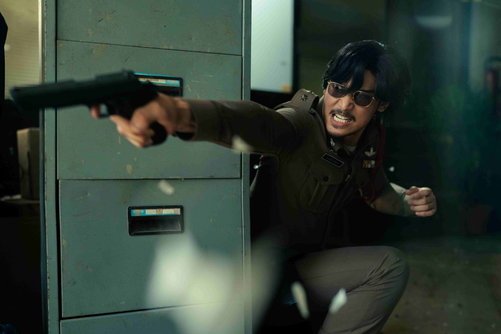 โดยฉากปล้นรถขนเงินถือเป็นฉากที่ยิ่งใหญ่ที่สุดของเรื่องที่ถูกวางโครงเรื่องไว้ตั้งแต่เขียนบท ตอนแรกทีมคิดจะใช้พื้นที่หน้าธนาคาร แต่เมื่อลงพื้นที่จริงกลับเจอโรงหนังเล็กๆ ในซอยแคบๆ โพธารามที่ให้อารมณ์คล้ายกับภาพยนตร์ มนต์รักนักพากย์ ทีมจึงตัดสินใจเลือกใช้โลเคชันนี้ และแทรกความพิเศษเล็กๆ ไว้ด้วยการยังวาดคัทเอ้าท์ด้วยมือของภาพยนตร์พยัคฆ์สาวตะไลเพลิง ติดไว้หน้าโรง ทำให้เกิดความพิเศษเป็นฉากแอ็กชันซ้อนซ้อนแอคชั่น กลายเป็นความมันส์คู่ขนานที่ทั้งจริงจังและแฟนตาซี ยิ่งมีรถแห่หนังโบราณที่ตัวละครใช้ถอยชนรถขนเงิน ทำให้ฉากนี้มีเอกลักษณ์เฉพาะตัว ฉากโรงหนังนี้จึงเป็นหนึ่งในซีนแอ็กชันที่สร้างสรรค์ที่สุด ผสมผสานความวินเทจของโลเคชัน ความสดใหม่ของหนังในหนัง และความโกลาหลของการต่อสู้ ไปพร้อมกัน