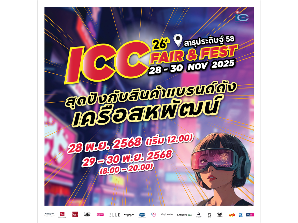 กลับมาอีกครั้งกับมหกรรมช้อปสุดคุ้มส่งท้ายปีของ บริษัท ไอ.ซี.ซี. อินเตอร์เนชั่นแนล จำกัด (มหาชน) ในงาน ICC Fair & Fest ครั้งที่ 26 (ไอ.ซี.ซี. แฟร์ แอนด์ เฟส ครั้งที่ 26) พบสินค้าคุณภาพจากแบรนด์ดัง กว่า 60 แบรนด์ ในเครือสหพัฒน์ฯ ขนมาลดกระหน่ำสูงสุด 80% อาทิ ARROW / GUY LAROCHE LACOSTE เครื่องสำอางและของใช้สตรี BSC /ELLE / WACOAL, ของใช้สำหรับแม่และเด็ก ABSORBA / ENFANT สินค้าอุปโภคบริโภคอย่าง เปา / มาม่า / เอสเซนส์ สินค้าญี่ปุ่นยอดนิยมจาก TSURUHA / Daiso พิเศษ! สมาชิก His & Her รับสิทธิประโยชน์สุดคุ้ม และ บริการบูธตัดผมฟรี จากสมาคมช่างตัดผมแห่งประเทศไทย