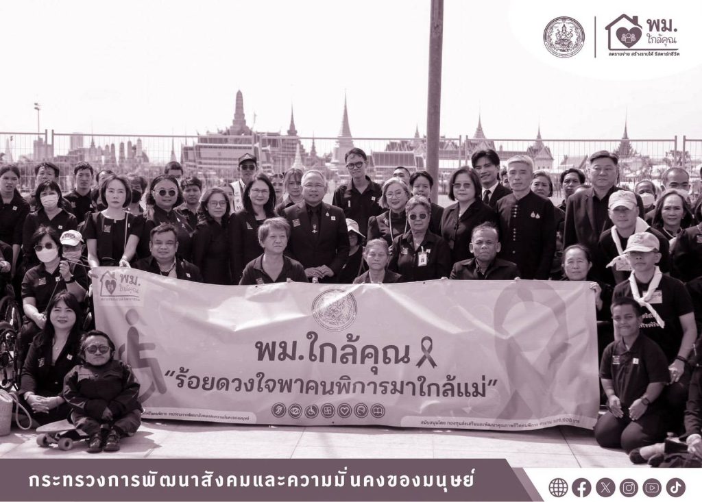 นายอัครา พรหมเผ่า รัฐมนตรีว่าการกระทรวงการพัฒนาสังคมและความมั่นคงของมนุษย์ (รมว.พม.) มอบหมายให้นายกันตพงศ์ รังษีสว่าง ปลัดกระทรวงการพัฒนาสังคมและความมั่นคงของมนุษย์ (ปลัด พม.) ลงพื้นที่ ณ ศูนย์อำนวยการจิตอาสาพระราชทาน ในบริเวณลานกลางแจ้ง ท้องสนามหลวง (ฝั่งมหาวิทยาลัยธรรมศาสตร์) เพื่อพบปะพูดคุย ให้กำลังใจคนพิการ ผู้ดูแลคนพิการ และผู้นำองค์กรคนพิการทุกประเภทความพิการ ที่ร่วมโครงการ “พม. ใกล้คุณ : ร้อยดวงใจพาคนพิการมาใกล้แม่” ซึ่งเป็นภารกิจสร้างโอกาส และส่งเสริมการมีส่วนร่วมของคนพิการและครอบครัว ตามนโยบาย “พม.ใกล้คุณ” ที่มุ่งเน้นการมีส่วนร่วมของคนพิการในกิจกรรมทางสังคมอย่างเท่าเทียม ตลอดจนเสริมสร้างความเข้าใจและเจตคติเชิงสร้างสรรค์ต่อคนพิการและความพิการ พร้อมทั้งส่งมอบรถเข็นนั่ง (วีลแชร์) จำนวน 30 คัน ให้กับศูนย์อำนวยการจิตอาสาพระราชทาน และกรุงเทพมหานคร เพื่อใช้ประโยชน์ในภารกิจของหน่วยงานและอำนวยความสะดวกสำหรับประชาชนที่มาถวายความอาลัยและถวายสักการะพระบรมศพ สมเด็จพระนางเจ้าสิริกิติ์ พระบรมราชินีนาถ พระบรมราชชนนีพันปีหลวง โดยได้รับเกียรติจาก ดร.หม่อมหลวง ณฐภา กิติยากร ประธานโครงการ ใจเราเท่ากันเสมอภาคด้วยคุณค่า พร้อมด้วยนางสาวสนธยา บุณยภูษิต อธิบดีกรมส่งเสริมและพัฒนาคุณภาพชีวิตคนพิการ และคณะผู้บริหารกระทรวง พม. เข้าร่วม จากนั้น นำคนพิการ ผู้ดูแลคนพิการ และผู้นำองค์กรคนพิการทุกประเภทความพิการ จำนวน 350 คน เดินทางเข้าถวายสักการะพระบรมศพ สมเด็จพระนางเจ้าสิริกิติ์ พระบรมราชินีนาถ พระบรมราชชนนีพันปีหลวง ณ พระที่นั่งดุสิตมหาปราสาท ในพระบรมมหาราชวัง