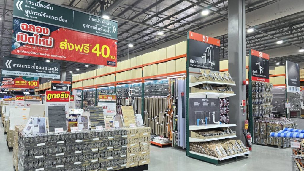 เมกาโฮม เวียงสระ ออกแบบสโตร์ให้ตอบโจทย์ทั้ง ลูกค้าบ้านและลูกค้าช่าง บนพื้นที่ขายชั้นเดียว รวม 5,668 ตร.ม. มีที่จอดรถรองรับได้ราว 130 คัน ครอบคลุมตั้งแต่วัสดุก่อสร้างโครงสร้างหลัก เหล็ก ปูน ระบบโครงหลังคา ไปจนถึงอุปกรณ์ช่างและกลุ่มสินค้าปรับปรุงบ้าน–เฟอร์นิเจอร์ เสริมด้วยโซน The Power สำหรับสินค้าเครื่องใช้ไฟฟ้า พร้อมสต็อกสินค้าและพื้นที่จัดเก็บ เพื่อรองรับดีมานด์จากเจ้าของบ้าน ผู้รับเหมา และโรงงานในพื้นที่อย่างไร้รอยต่อไม่ขาดตอน มาที่เดียว ครบ จบ ทั้งเรื่องบ้านและงานช่าง