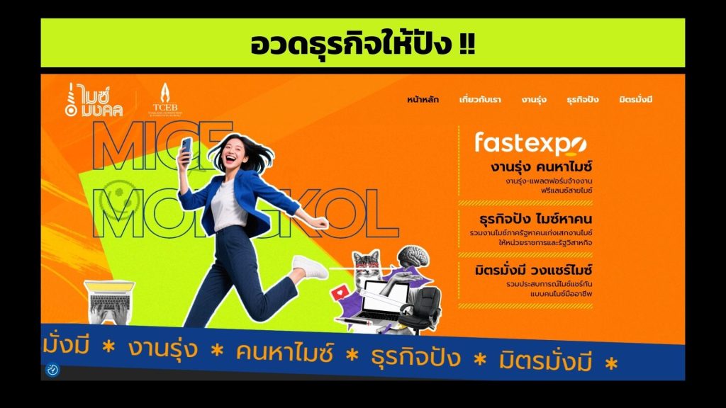 งานรุ่ง : คนหาไมซ์ (แพลตฟอร์มจ้างงานฟรีแลนซ์สายไมซ์ โดยเป็นการร่วมมือกับ FASTWORK)