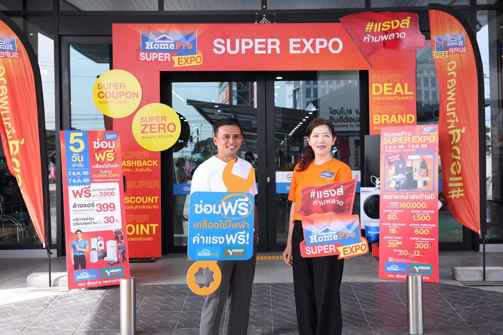โฮมโปร จัดมหกรรม “HomePro SUPER EXPO x CHANG HomePro ซ่อมฟรี! เครื่องใช้ไฟฟ้า” ส่งท้ายปี 3-7 ธันวาคม 2568 นี้ ทั่วประเทศ ยกระดับงานอีเว้นต์สินค้าและบริการเรื่องบ้านครั้งใหญ่ของปี สู่ภารกิจ ‘Better Living’ ชวนคนไทยทำ “บ้านดีขึ้น–โลกดีขึ้น” ไปพร้อมกัน มางานเดียวได้ครบทั้ง ช้อปคุ้ม-ซ่อมฟรี-ลดขยะ ผ่านการช้อปสินค้าราคาคุ้มค่า ควบคู่ไปกับบริการซ่อมเครื่องใช้ไฟฟ้าเก่า เพื่อยืดอายุการใช้งาน ให้สินค้ากลับมามีคุณค่าอีกครั้ง จากทีมช่างโฮมโปร-มือโปรประจำบ้านคุณ ที่รับซ่อมเครื่องใช้ไฟฟ้าทุกรุ่น ทุกแบรนด์ (แม้ไม่ได้ซื้อจากโฮมโปร) ฟรี! ค่าแรง 2 ชิ้นแรก/สมาชิกโฮมการ์ด พร้อมดีลบริการจากช่างโฮมโปรแบบจัดเต็ม ทั้งตรวจระบบไฟฟ้าฟรี! มูลค่า 3,000 บาท ล้างแอร์ 399 บาท (*โปรฯแรงช่วงเช้า เท่านั้น*) และส่วนลดบริการซ่อม-ปรับปรุงบ้านสูงสุด 30% เสริมความคุ้มต่อกับ SUPER COUPON & SUPER CASHBACK แจกส่วนลด + รับเครดิตเงินคืนรวมสูงสุด 162,100 บาทที่โฮมโปร และส่วนลด + รับเงินคืนรวมสูงสุด 132,100 บาท ที่เมกาโฮม และฉลองครบรอบ 29 ปีโฮมโปร ช้อปทุก 3,000 บาท รับ 1 สิทธิ์ ลุ้นทอง รวมมูลค่า 29 บาท (*หากชำระด้วยบัตรเครดิต VISA รับสิทธิ์เพิ่มอีก 5 เท่า*) และยังได้มีส่วนร่วมทำสิ่งดีๆ เพื่อโลก กับกิจกรรม “ขวดใสมีค่าอย่าทิ้ง” เปลี่ยนขวดน้ำพลาสติก ขนาด 330 มล. ขึ้นไป เป็นส่วนลด ห้ามพลาด !! มางานเดียวได้ครบทั้งความคุ้มสินค้าและบริการเรื่องบ้าน และได้ลดขยะให้โลกไปพร้อมกัน พบกันที่โฮมโปร เมกาโฮมทุกสาขาทั่วประเทศและออนไลน์ ตั้งแต่ 3-7 ธันวาคม 2568 นี้ 5 วันเท่านั้น !!