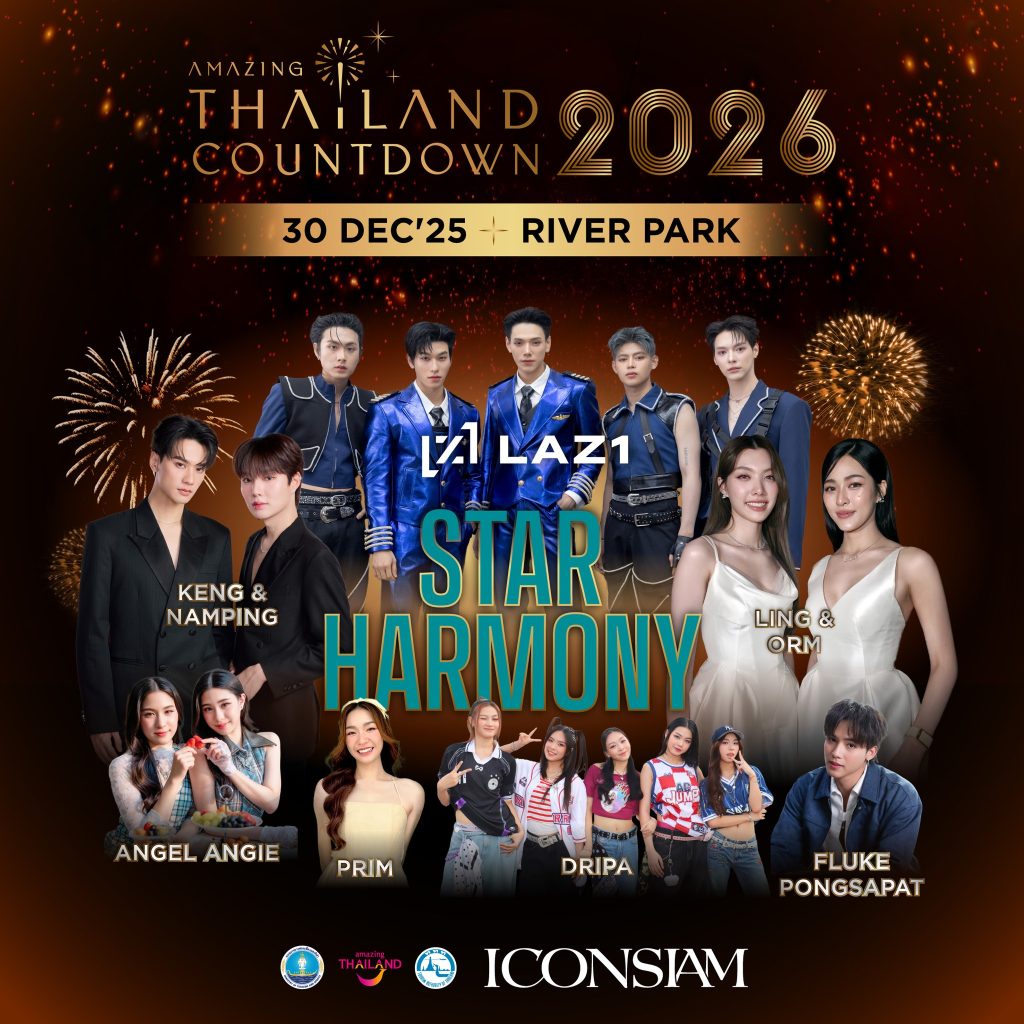 ● วันที่ 30 ธันวาคม 2568 ค่ำคืนพิเศษที่ทำให้การส่งท้ายปีเก่าต้อนรับปีใหม่เต็มไปด้วยโมเมนต์แห่งความประทับใจที่สุด ตั้งแต่การกลับมารวมตัวแบบครบวงอีกครั้งของ LAZ1 การแสดงสุดเอ็กซ์คลูซีฟจากหลิง-ออม จนถึงสัมผัสไปกับบรรยากาศของเคมีที่ดีมาก ๆ ระหว่าง เก่ง-น้ำปิง และยังมีเซอร์ไพรส์อีกเพียบจาก Angel Angie, Prim, DRIPA, Fluke Pongsapat และ In The 8ight ภายในคอนเซ็ปต์ STAR HARMONY