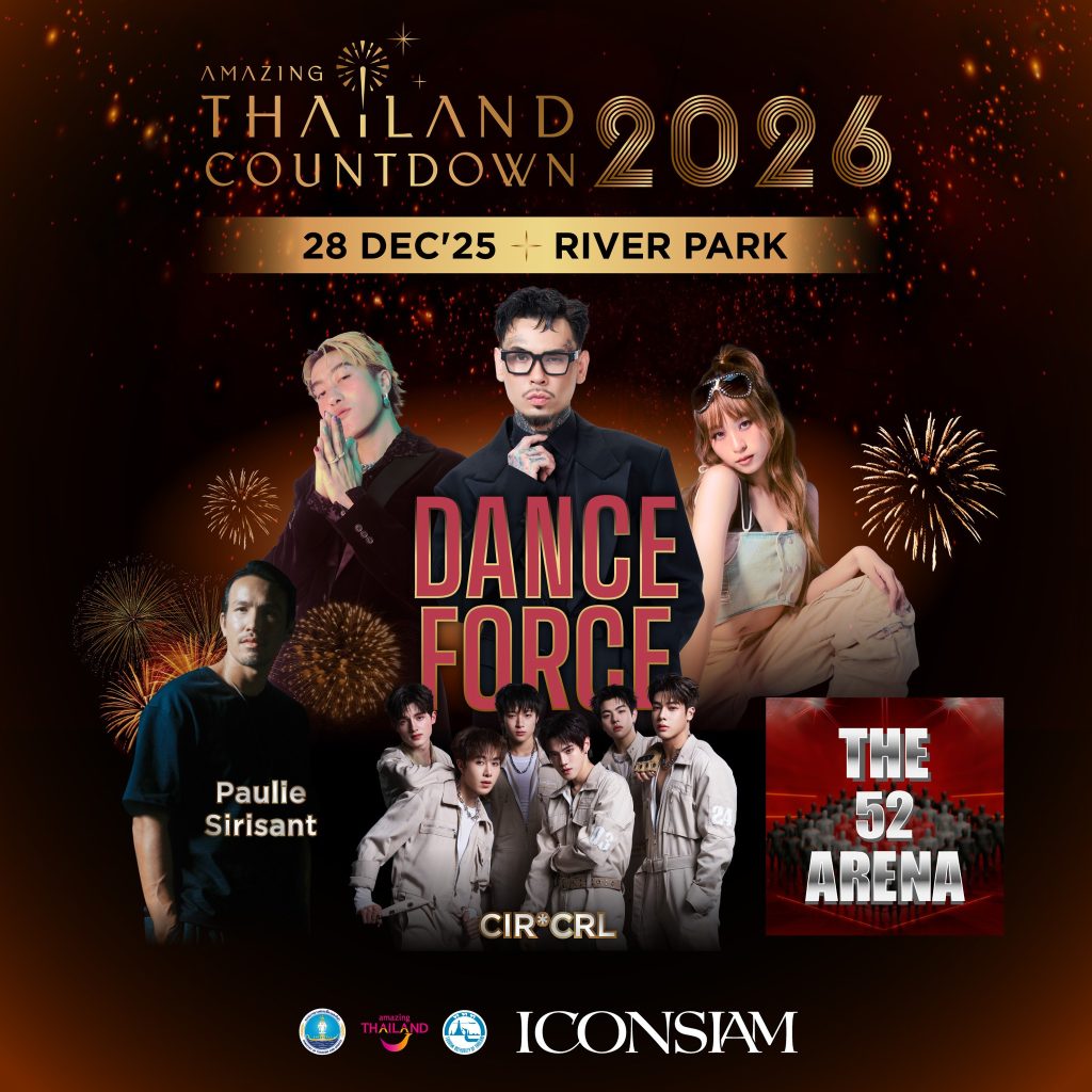 ● วันที่ 28 ธันวาคม 2568 ความบันเทิงแบบไร้ขีดจำกัดจะถูกนำเสนอในรูปแบบของ DANCE FORCE ให้ทุก Gen ได้รวมพลังเป็นหนึ่งเดียวทั้งกรี๊ด ทั้งเต้น ในโมเมนต์ที่สนุกที่สุดแห่งปี นำโดย URBOYTJ, CDGUNTEE & NARA, CIR*CRL, THE 52 ARENA และ Paulie Sirisant (DJ) พร้อมเนรมิตพื้นที่ริเวอร์ พาร์คให้กลายเป็น Riverfront Dance Arena ฟลอร์เต้นรำขนาดใหญ่ที่สุดริมเจ้าพระยา