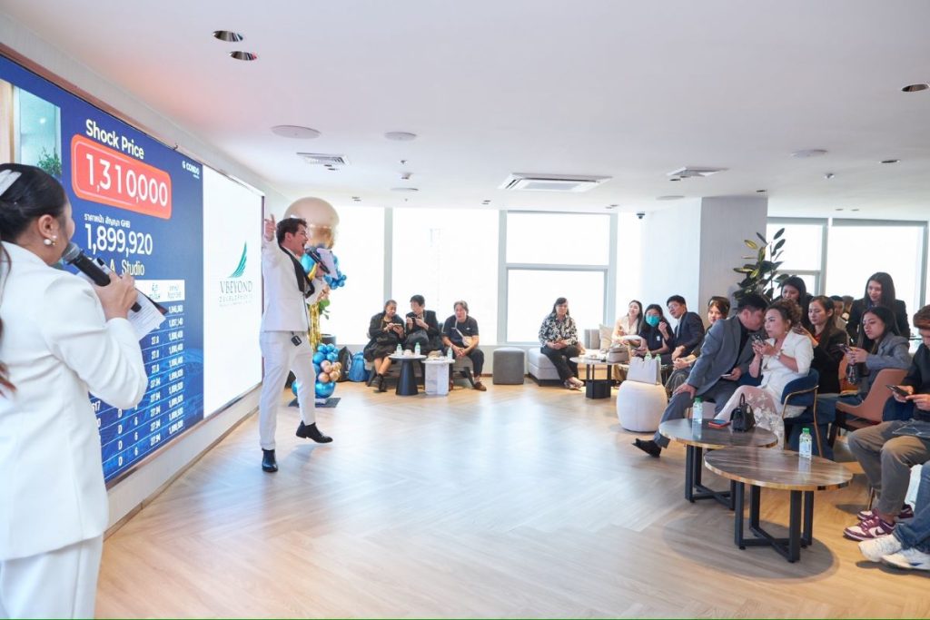 บรรยากาศภายในงานเป็นไปอย่างคึกคักจากเหล่านักค้าอสังหาฯ มืออาชีพที่มารวมตัวกันอย่างคับคั่งตั้งแต่ก่อนงานเริ่ม ซึ่งงานนี้ “วีบียอนด์” ก็ไม่ทำให้ผิดหวัง จัดจอ LED ยักษ์ link ระบบไลน์แอด เพื่อให้ทุกคนได้ช้อปสินค้ากันแบบตื่นตาตื่นใจ กับสินค้าราคาพิเศษแบบที่ไม่เคยมีมาก่อน ทั้งบ้าน คอนโด และบ้านรีโนเวทพร้อมอยู่ บนทำเลศักยภาพ พร้อมรับของแถมแบบจุกๆ โดยสามารถปิดเคลียร์สต๊อกสินค้าภายในงานไปได้มากกว่า 90% นอกจากนี้ยังมีของรางวัลบิ๊กเซอร์ไพร์ส!!! ทุกๆ ยอดโอนรับสิทธิ์ร่วมแคมเปญ ขายดี-มีเปย์ 2026 สะสมยอดรับรางวัลใหญ่ตลอดปี และอีกหนึ่งไฮไลท์ของงานที่สร้างความประทับใจให้เหล่านักค้าอสังหาฯ กับแขกรับเชิญชื่อดังเจ้าของฉายา “แดดดี้” คุณภาสวีร์ ลพอุทัย ประธานเจ้าหน้าที่บริหาร บริษัท เรียลตี้วัน เอสเตท (ประเทศไทย) จำกัด (มหาชน) ที่ให้เกียรติมาร่วมพูดคุย แชร์ประสบการณ์ พร้อมแนะนำเทคนิคการเป็นนักขายอสังหาฯ ให้ประสบความสำเร็จในงานนี้อีกด้วย