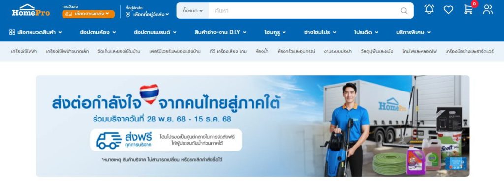 พร้อมชวน “ส่งต่อกำลังใจ จากคนไทยสู่ภาคใต้” เปิดโอกาสให้ทุกคน ร่วมส่งมอบน้ำใจ ผ่านการเลือกซื้อสินค้าในกลุ่มของใช้จำเป็น อาทิ อุปกรณ์นิรภัยส่วนบุคคล ที่นอน ผ้าห่ม ผ้าขนหนู อุปกรณ์ทำความสะอาด น้ำยาทำความสะอาด อุปกรณ์ให้แสงสว่าง–ป้องกันสัตว์ และของใช้พื้นฐานอื่นๆ เพื่อช่วยให้ผู้ประสบภัยสามารถจัดระเบียบบ้านและพื้นที่อยู่อาศัยหลังน้ำลดได้อีกครั้ง โดยโฮมโปรจะทำหน้าที่เป็นศูนย์กลางในการรวบรวม คัดแยก และจัดส่ง ฟรี ไปยังพื้นที่ประสบอุทกภัยในภาคใต้ ตั้งแต่วันนี้ ถึง 15 ธันวาคม 2568