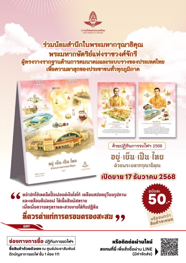 ในโอกาสเทศกาลปีใหม่ การรถไฟฯ ได้จัดทำ ปฏิทินตั้งโต๊ะ ประจำปี 2569 (2026)