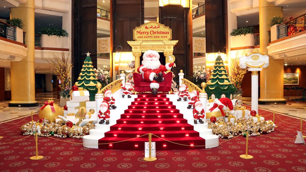 เชิญร่วมฉลองคริสต์มาสอีฟ ค่ำวันที่ 24 ธันวาคม 2568 ด้วย บุฟเฟต์นานาชาติที่มีซูชิพรีเมียมและซีฟู้ด อาทิ หอยนางรม ปูม้า กุ้งเผา ไก่งวง พาร์มาแฮม ซุปทรัฟเฟิล ซูชิฟัวกราส์ วากิว คานิมิโซะ ฯลฯ รวมเครื่องดื่มน้ำอัดลม ชา-กาแฟ พบลุงซานต้ามาแจกของขวัญและพร้อมให้ถ่ายรูปร่วมกัน ราคาผู้ใหญ่เพียงท่านละ 1,529 บาท เด็ก 650 บาท ระหว่างเวลา 18.00 – 22.00 น. ที่ดิเอมเมอรัลด์ ค็อฟฟี่ช็อพ โรงแรม ดิ เอมเมอรัลด์
