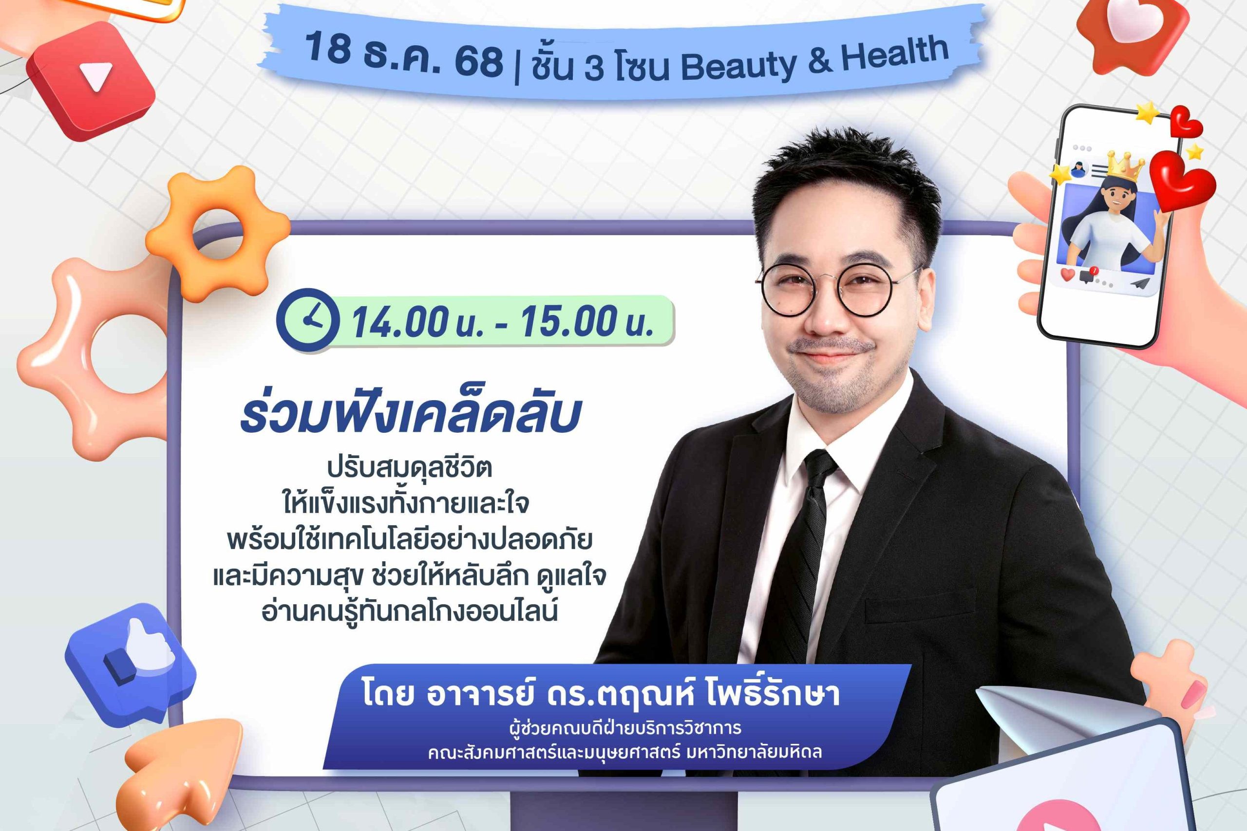 มาเปลี่ยนแปลงชีวิตให้ดีขึ้น ทั้งในด้านร่างกาย อารมณ์ และการใช้เทคโนโลยีอย่างฉลาดและปลอดภัย ในงาน PARADISE PARK HEALTH & WELLNESS #สมดุลชีวิตยุคดิจิทัล ในวันพฤหัสบดีที่ 18 ธันวาคม 2568 เวลา 14.00 น. – 15.00 น. ณ ชั้น 3 โซน Beauty & Health ศูนย์การค้าพาราไดซ์ พาร์ค