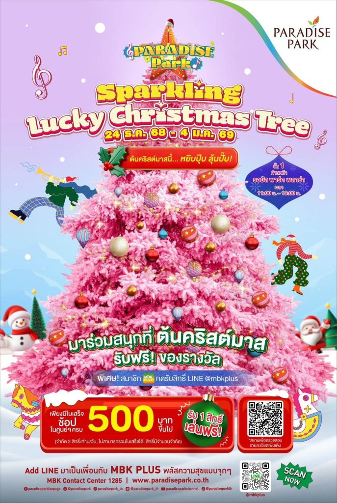 เลือกช้อปของขวัญสุดพรีเมียม เพลิดเพลินกับสินค้าคุณภาพจากร้านค้าชั้นนำแล้ว อย่าลืมแวะมาร่วมลุ้นของขวัญสุดพิเศษมากมาย กับกิจกรรม Sparkling Lucky Christmas Tree ยิบปุ๊ป ลุ้นปั๊ป ทันที! สำหรับสมาชิก MBK PLUS เพียงแสดงใบเสร็จช้อปภายในศูนย์ครบ 500 บาทขึ้นไป รับสิทธิ์จับลูก Snow Ball เพื่อลุ้นของขวัญสุดพิเศษ (จำกัด 2 สิทธิ์ต่อวัน และไม่สามารถรวมใบเสร็จได้) ตั้งแต่วันพุธที่ 24 ธันวาคม 2568 ถึงวันอาทิตย์ที่ 4 มกราคม 2569 มาร่วมสัมผัสบรรยากาศแห่งความสุข เลือกช้อปของขวัญสุดพิเศษให้คนรู้ใจ และสร้างโมเมนต์ดี ๆ ในช่วงเวลาส่งท้ายปีได้ที่ พาราไดซ์ พาร์ค ครบทุกความสุขในที่เดียว