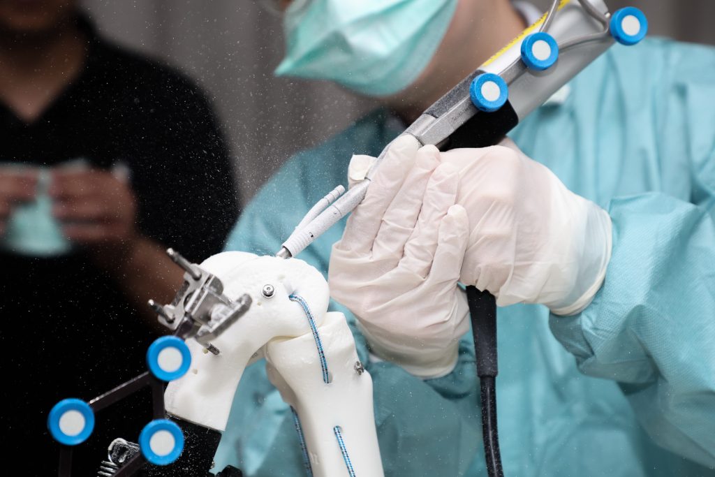 โดยโครงการ International Visiting Surgeon Program (VSP): Robotics Knee Replacement ครั้งนี้ มีคณะแพทย์จากประเทศมาเลเซีย เข้าร่วมการฝึกอบรมเชิงลึกด้านการผ่าตัดเปลี่ยนข้อเข่าด้วยหุ่นยนต์ โดยใช้เทคโนโลยี CORI Robotic System ซึ่งได้รับการยอมรับในระดับสากล หลักสูตรครอบคลุมการผ่าตัดทั้งแบบ Total Knee Arthroplasty (TKA) และ Unicompartmental Knee Arthroplasty (UKA) ผสานการเรียนรู้ทั้งภาคทฤษฎีและภาคปฏิบัติ ตั้งแต่การเตรียมห้องผ่าตัด การวางแผนผ่าตัด ไปจนถึงการฝึกปฏิบัติแบบ Hands-on ด้วยอุปกรณ์จำลอง (Sawbones) ภายใต้การดูแลของคณาจารย์แพทย์ผู้เชี่ยวชาญของประเทศไทย