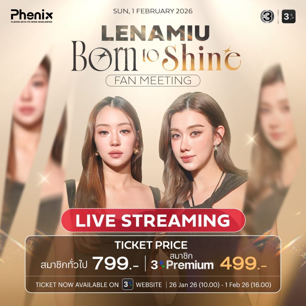 เตรียมตัวให้พร้อม แล้วมาร่วมเก็บทุกโมเมนต์สุดประทับใจไปพร้อมกันใน “LENAMIU Born to Shine Fan Meeting” เปิดให้ชม Live Streaming ในวันที่ 1 กุมภาพันธ์ 2569 เวลา 15.00 น. พร้อมคำบรรยายภาษาอังกฤษแบบสรุปตลอดการไลฟ์