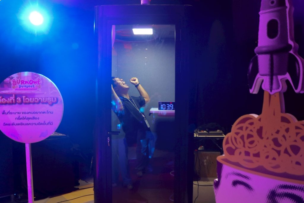 สำหรับกิจกรรม “MBK CENTER BURNOUT Project” #ระบมอะรายไประบายอารมณ์ เป็นนิทรรศการปลดปล่อยของคนทำงานที่เปิดโอกาสให้ได้ระบายความเครียดที่สะสมและปลดปล่อยอารมณ์ผ่าน 4 ห้องกิจกรรมที่ออกแบบมาเพื่อเป็นพื้นที่ที่ปลอดภัยและเข้าใจทุกอารมณ์ของผู้คน สามารถเลือก “ระบาย” ได้ตรงกับอารมณ์ของตัวเอง
