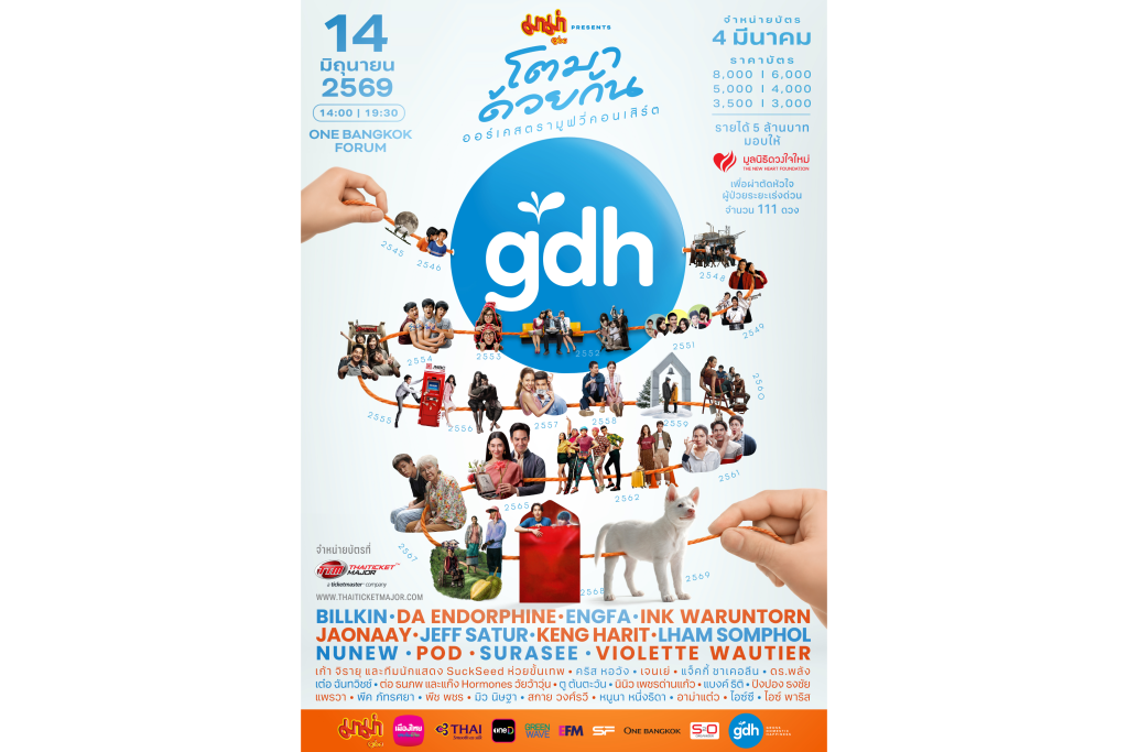 สิ้นสุดการรอคอย เมื่อ บริษัท จีดีเอช ห้าห้าเก้า จำกัด ร่วมกับ บริษัท เอส ทู ออร์กาไนเซอร์ จำกัด พร้อมเสิร์ฟความสุขให้กับแฟนๆ คอหนังใน “มาม่า presents GDH โตมาด้วยกัน ออร์เคสตรามูฟวี่คอนเสิร์ต” ครั้งแรกกับคอนเสิร์ตที่จะพาทุกคนย้อนกลับไปสู่ความทรงจำแสนประทับใจจากจักรวาล GTH & GDH ผ่านบทเพลงและฉากในตำนาน ในรูปแบบออร์เคสตราเต็มรูปแบบ จัดขึ้นทั้งหมด 2 รอบการแสดง ในวันเสาร์ ที่ 14 มิถุนายน 2569 เวลา 14:00 น. และ 19:30 น. ณ One Bangkok Forum ซึ่งงานนี้ได้ 3 หัวเรือใหญ่ เก้ง–จิระ มะลิกุล, วัน-วรรณฤดี พงษ์สิทธิศักดิ์ และ ปิ๊ง-อดิสรณ์ ตรีสิริเกษม มารับหน้าที่ Show Director ถ่ายทอดเสน่ห์และความตราตรึงของผลงานหนังของ GTH & GDH ให้กลายเป็นประสบการณ์การแสดงสดบนเวทีที่แฟนๆ จะไม่มีวันลืม