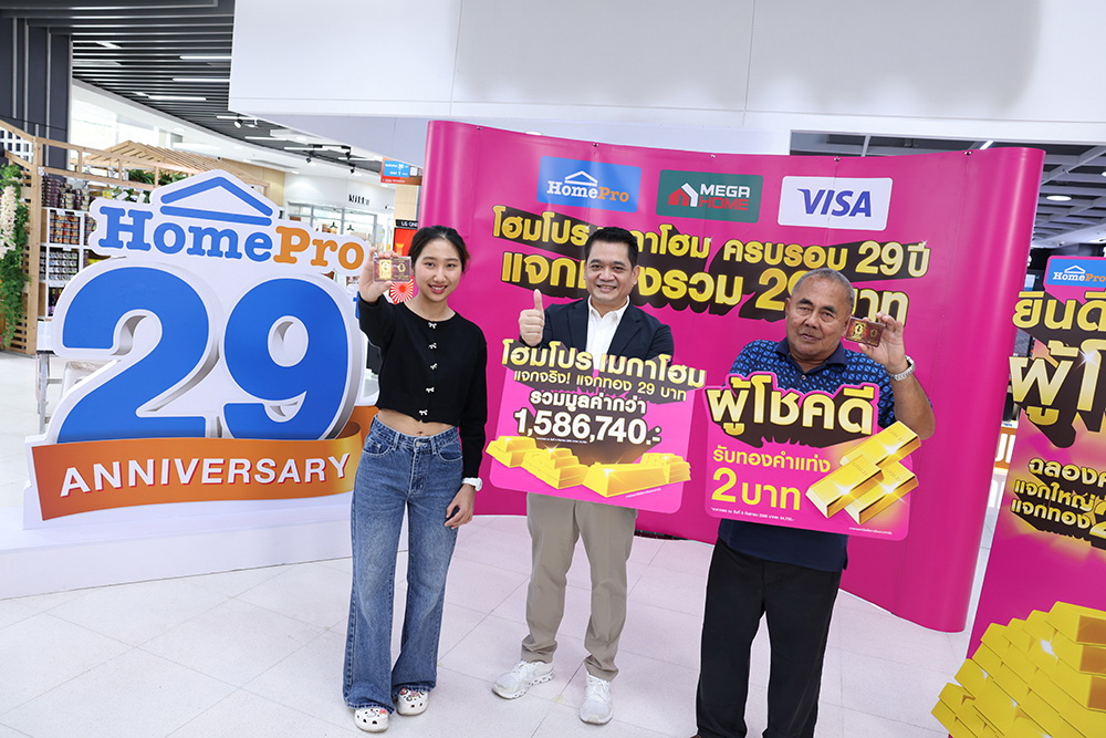 โฮมโปร–เมกาโฮม มอบทองคำแท่งผู้โชคดี ภายใต้แคมเปญ “แจกทอง 29 บาท-เครื่องใช้ไฟฟ้า 29 รางวัล”ตอกย้ำความสุขทุกครั้งที่ได้มาช้อป!