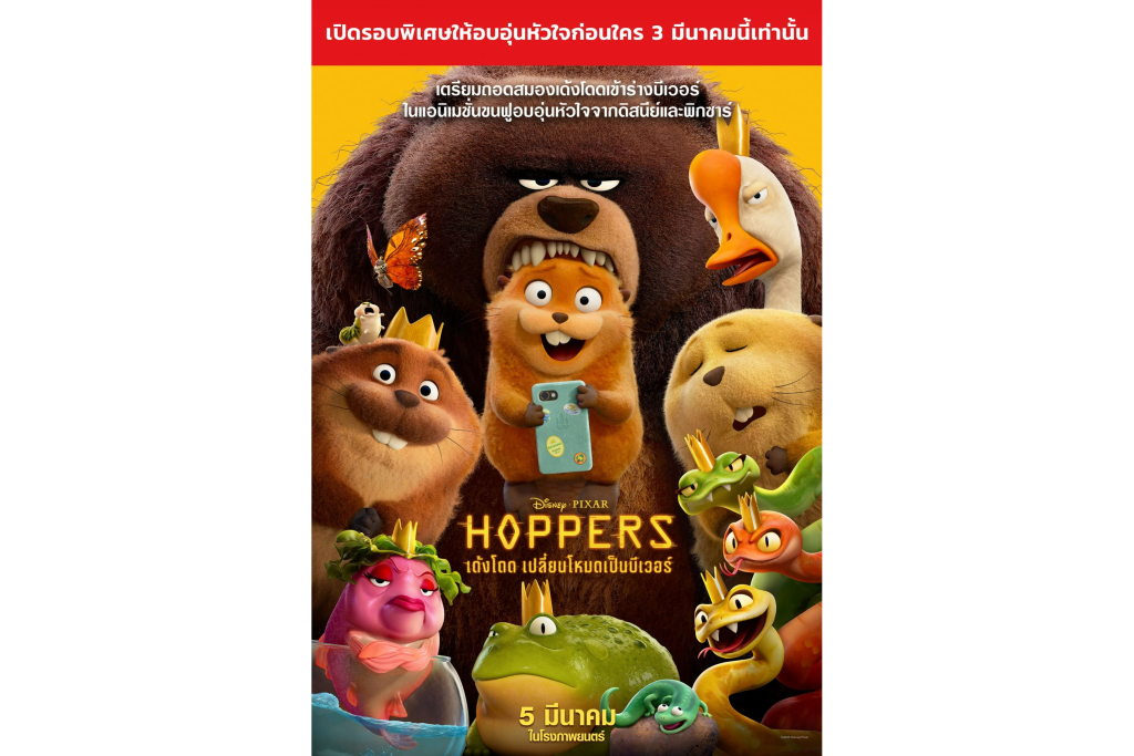 เตรียมไปผจญภัยหลุดโลกกับสายลับบีเวอร์ และดื่มด่ำกับความงามของผืนป่าที่สวยสมจริงในมุมมองที่ไม่เคยเห็นมาก่อนใน “Disney & Pixar’s Hoppers เด้งโดด เปลี่ยนโหมดเป็นบีเวอร์” ซื้อตั๋วล่วงหน้าวันนี้ แล้วรอขำจนปอดโยกได้เลย เข้าฉายจริง 5 มีนาคม ในโรงภาพยนตร์ทั่วประเทศ ทั้งในระบบปกติ และระบบ IMAX, 4DX, Dolby Vision+Atmos, Zigma Cinestadium และ MX4D แต่ถ้าอยากฮาก่อน Hoppers มีข่าวดี เปิดรอบพิเศษให้ดูก่อนใครในวันที่ 3 มีนาคมนี้ เช็กสาขาและรอบฉายได้ที่เว็บไซต์โรงภาพยนตร์