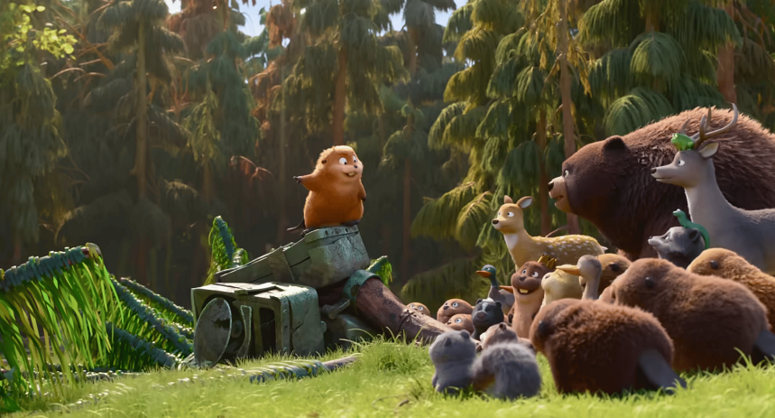 นอกจากนี้ อีกหนึ่งโจทย์สำคัญคือการถ่ายทอดถิ่นที่อยู่อาศัยของบีเวอร์ให้ถูกต้อง โดยทีมงานได้นำแรงบันดาลใจจากการเดินทางวิจัยที่โคโลราโด ซึ่งพวกเขาได้เห็นบีเวอร์ในสภาพแวดล้อมจริง ร่วมกับ Dr. Emily Fairfax ผู้เชี่ยวชาญด้าน Ecohydrology (การศึกษาความสัมพันธ์ระหว่างน้ำกับระบบสิ่งมีชีวิต) ในพื้นที่ใกล้แม่น้ำ มาสร้างสรรค์ โดยนำโทนเหลือง–ส้มของป่าแอสเพนและป่าสนเข้ามาเติมชีวิตชีวาให้พาเล็ตสีของเรื่อง ซึ่งป่าแอสเพนที่เชื่อมต่อด้วยระบบรากเดียวกันยังสื่อความหมาย สะท้อนธีมสำคัญของภาพยนตร์ นั่นคือ ความเชื่อมโยงระหว่างทุกชีวิต เรียกได้ว่าภายใต้ความสวยของงานภาพ ยังมีสารสำคัญซ่อนอยู่ด้วย