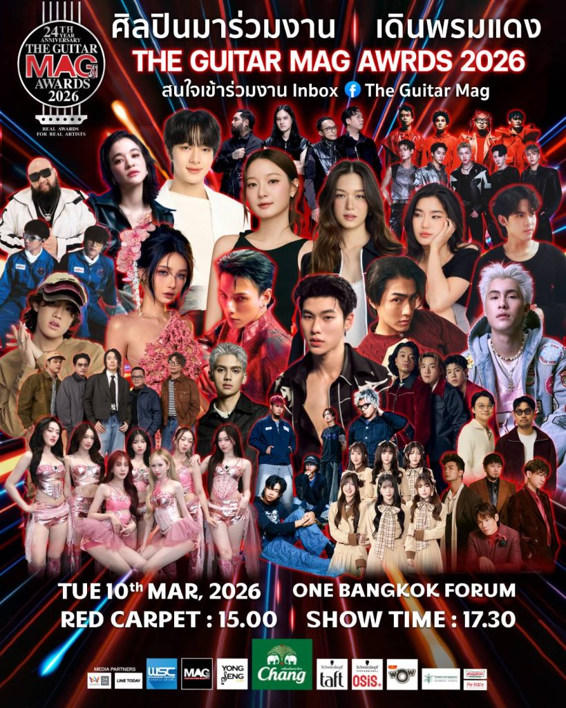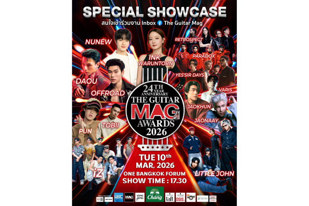 The Guitar Mag Awards 2026 15th Anniversary Celebrations ครบรอบ 15 ปี งานประกาศรางวัลทางดนตรีที่ยิ่งใหญ่ที่สุดในประเทศ ไฮไลต์สำคัญคือการมอบ 19 รางวัลอันทรงเกียรติ ให้กับคนดนตรี ทั้งเบื้องหน้าและเบื้องหลังในวงการ ที่มีผลงานโดดเด่นในรอบปีที่ผ่านมา ซึ่งในแต่ละสาขารางวัล จะตกเป็นของศิลปินใดบ้างมาร่วมลุ้น ร่วมเชียร์ไปพร้อมกัน ในวันอังคารที่ 10 มีนาคม 2569 ณ ONE BANGKOK FORUM เปิดลงทะเบียนรับบัตรได้ตั้งแต่ 11.00น. เป็นต้นไป