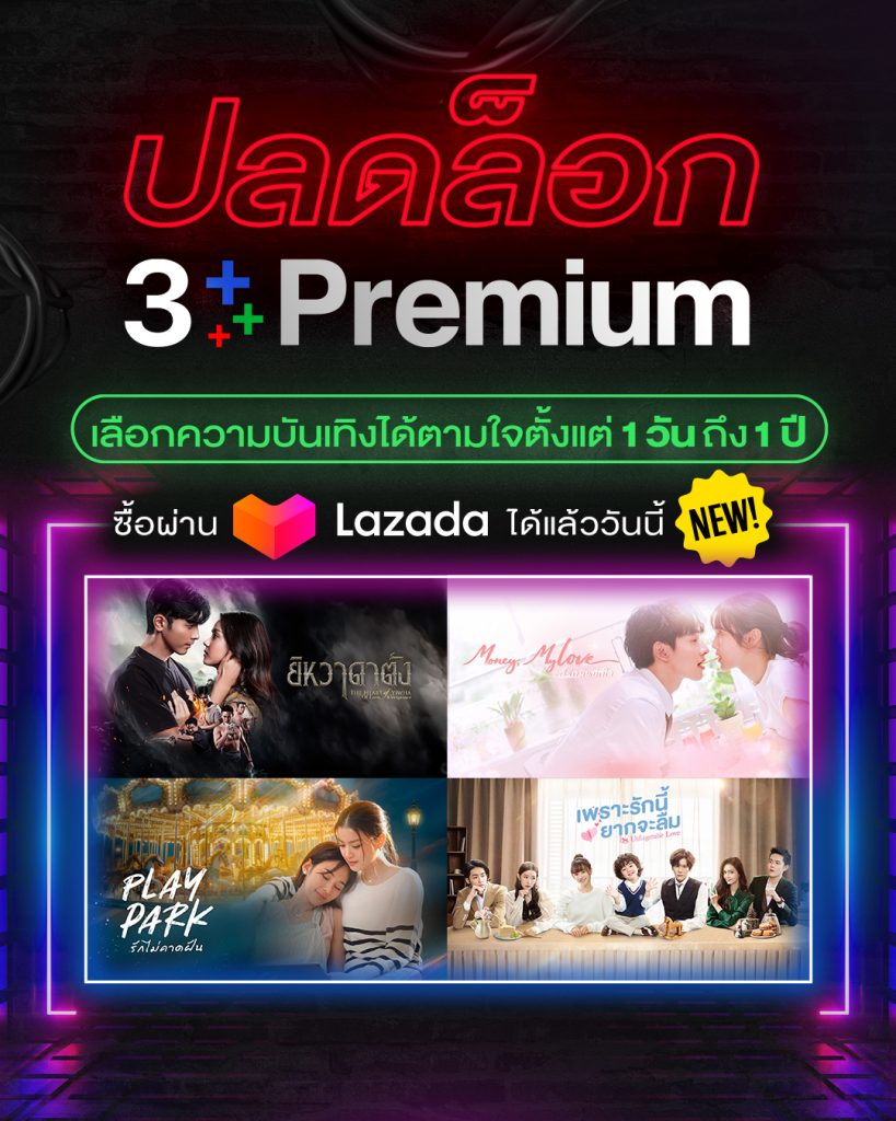 3Plus แพลตฟอร์มสตรีมมิ่งคอนเทนต์คุณภาพจาก ช่อง 3 เปิด Official Store บน Lazada อย่างเป็นทางการ เพิ่มความสะดวก และเป็นทางเลือกใหม่ในการเข้าถึง 3Plus Premium สำหรับผู้ชมยุคดิจิทัลที่ต้องการความรวดเร็ว และยืดหยุ่นในการเลือกแพ็กเกจสมาชิก ผู้ชมสามารถเลือกแพ็กเกจได้หลากหลาย ตั้งแต่แบบระยะสั้น 1 วัน / 3 วัน / 7 วัน / 15 วัน ไปจนถึง 1 เดือน / 3 เดือน / 6 เดือน และ 1 ปี รองรับทั้งคนที่อยากทดลองรับชมก่อน และคนที่ต้องการดูต่อเนื่องแบบคุ้มค่าในระยะยาว