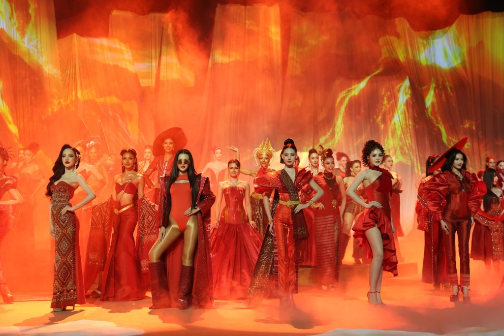 บรรยากาศวันนี้คึกคึกไปด้วยแฟนนางงาม ทัพสื่อมวลชน ป้ายไฟ เสียงเชียร์ ฟู้ดซัพพอร์ต มาลัยสนับสนุนมากันแน่น เปิดเวทีตระการตาด้วย Thai Costume Fashion Show ชุดไทยประยุกต์ ถ่ายทอดความวิจิตรและเอกลักษณ์ความเป็น Thainess ฝีมือการออกแบบและตัดเย็บโดยดีไซเนอร์เลือดไทย 77 จังหวัด ไม่มีซ้ำ สะกดทุกสายตาผู้ชมทั้งในฮอลล์ และที่กำลังรับชมทาง YouTube : Grand TV ปิดท้ายโชว์ด้วยการปรากฏกายของ กชเบล ศรัณย์รัชต์ เผือกพิพัฒน์ Miss Grand Thailand 2025 ร่วมส่งต่อแรงบันดาลใจสู่รุ่นน้องด้วยเพลง บ้านเกิดเมืองนอน บอกได้คำเดียวว่า “ทรงพลัง” เหลือเกิน