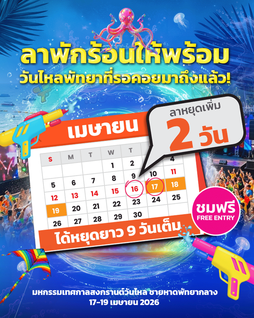 “พัทยา สงกรานต์ วันไหล 2026” จึงไม่ใช่แค่งานเล่นน้ำสงกรานต์ที่ธรรมดา แต่คือมหกรรมความสุขริมทะเลที่รวมทุกความสนุก ความมันส์ และเสน่ห์ของวัฒนธรรมไทยไว้ในที่เดียว พร้อมตอกย้ำภาพลักษณ์ของเมืองพัทยาในฐานะจุดหมายปลายทางแห่งเทศกาลระดับโลก ที่จะทำให้สงกรานต์ปีนี้ยิ่งใหญ่ สนุก และน่าจดจำที่สุด!! พบกับคอนเสิร์ตจากศิลปินดังตลอด 3 วันเต็ม และ T-POP สุดฮอตที่พร้อมระเบิดความมันส์แบบนันสต๊อป กับโปรดักชั่น แสง สี เสียง สุดอลังการ บนพื้นที่ชายหาดพัทยาเหนือจรดใต้