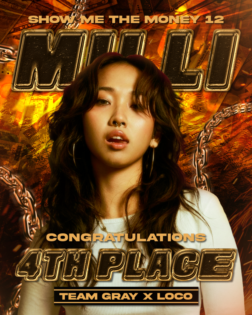 ทว่าท้ายที่สุด เมื่อรวมคะแนนจากการโหวตทุกช่องทาง MILLI คว้าอันดับที่ 4 Show Me The Money ซีซัน 12 ไปครองอย่างน่าภาคภูมิใจ