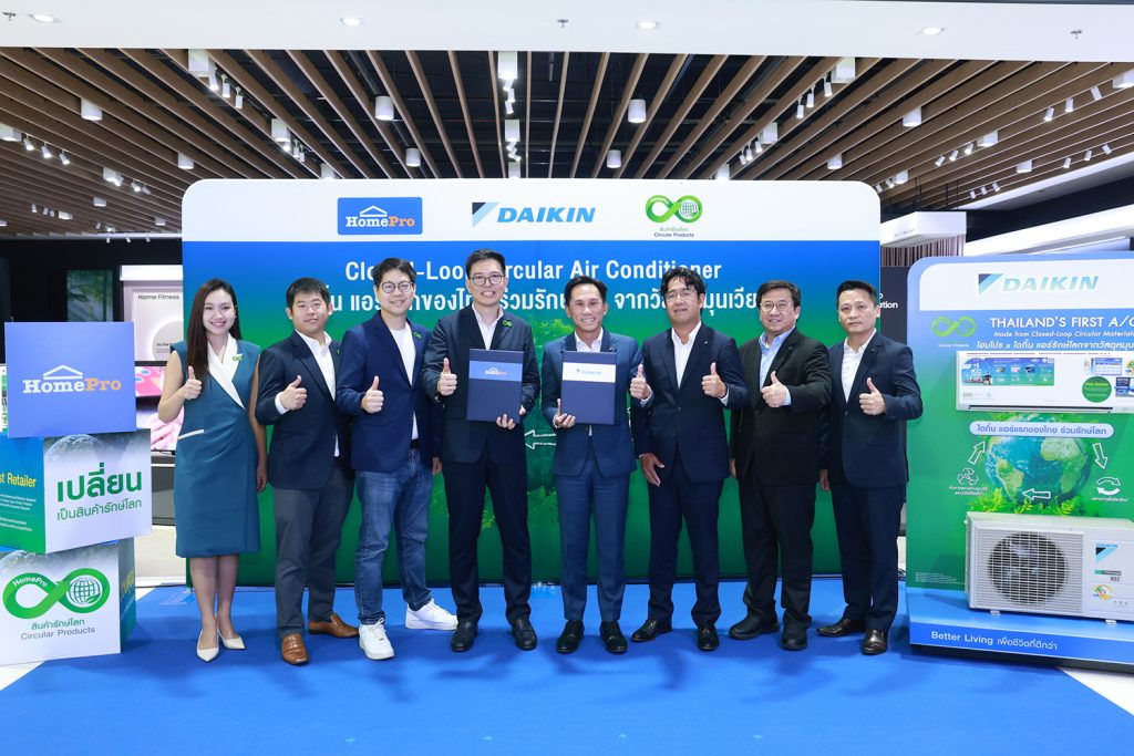 นายวรพงศ์ กียปัจจ์ กรรมการผู้จัดการ บริษัท สยามไดกิ้นเซลส์ จำกัด และ นายคาสุฮิสะ ฮินาสึ กรรมการบริษัท ไดกิ้น อินดัสทรีส์ (ประเทศไทย) จำกัด พร้อมด้วย นายอาเทพ พันธุ์อุทัยวัฒน์ ผู้ช่วยกรรมการผู้จัดการ บริษัท โฮม โปรดักส์ เซ็นเตอร์ จำกัด (มหาชน) เปิดตัว “เครื่องปรับอากาศรักษ์โลก” (Circular Air Conditioner) ครั้งแรกในประเทศไทย ภายใต้โมเดล Closed Loop Circular Product เปลี่ยนขยะจากโครงการ “แลกเก่าเพื่อโลกใหม่” ของโฮมโปร เป็นผลิตภัณฑ์เพื่อการอยู่อาศัยที่ยั่งยืนในชีวิตประจำวันของผู้บริโภค พร้อมวางจำหน่ายผ่านทุกช่องทางของโฮมโปรทั่วประเทศ สะท้อนบทบาทสององค์กรในการขับเคลื่อนนวัตกรรมที่ตอบโจทย์ประสิทธิภาพการใช้งานและความรับผิดชอบต่อสิ่งแวดล้อมไปพร้อมกัน  โดยมี  นายอนิรุทธ์ จินดาดำรงวนิช , นายณพล ก่อก้องวิศรุต นางสาวจริญญา ศรีประยูร ร่วมงาน ณ โฮมโปร สาขารังสิต