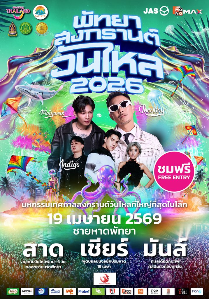 เตรียมพบกับงานสงกรานต์วันไหลริมทะเลสุดยิ่งใหญ่แห่งเดียวในโลก พร้อมมอบประสบการณ์ความบันเทิงครบวงจร ทั้งเล่นน้ำ เชียร์บอล และชมคอนเสิร์ต ภายใต้ความร่วมมือของ การท่องเที่ยวแห่งประเทศไทย สำนักงานพัทยา, เมืองพัทยา และ สำนักงานวัฒนธรรมจังหวัดชลบุรี ร่วมกับ MONOMAX (โมโนแม็กซ์) จัดงาน “พัทยา สงกรานต์ วันไหล 2026” เพื่อตอกย้ำภาพลักษณ์เทศกาลระดับแลนด์มาร์คของเมืองพัทยาในสายตานักท่องเที่ยวทั่วโลก