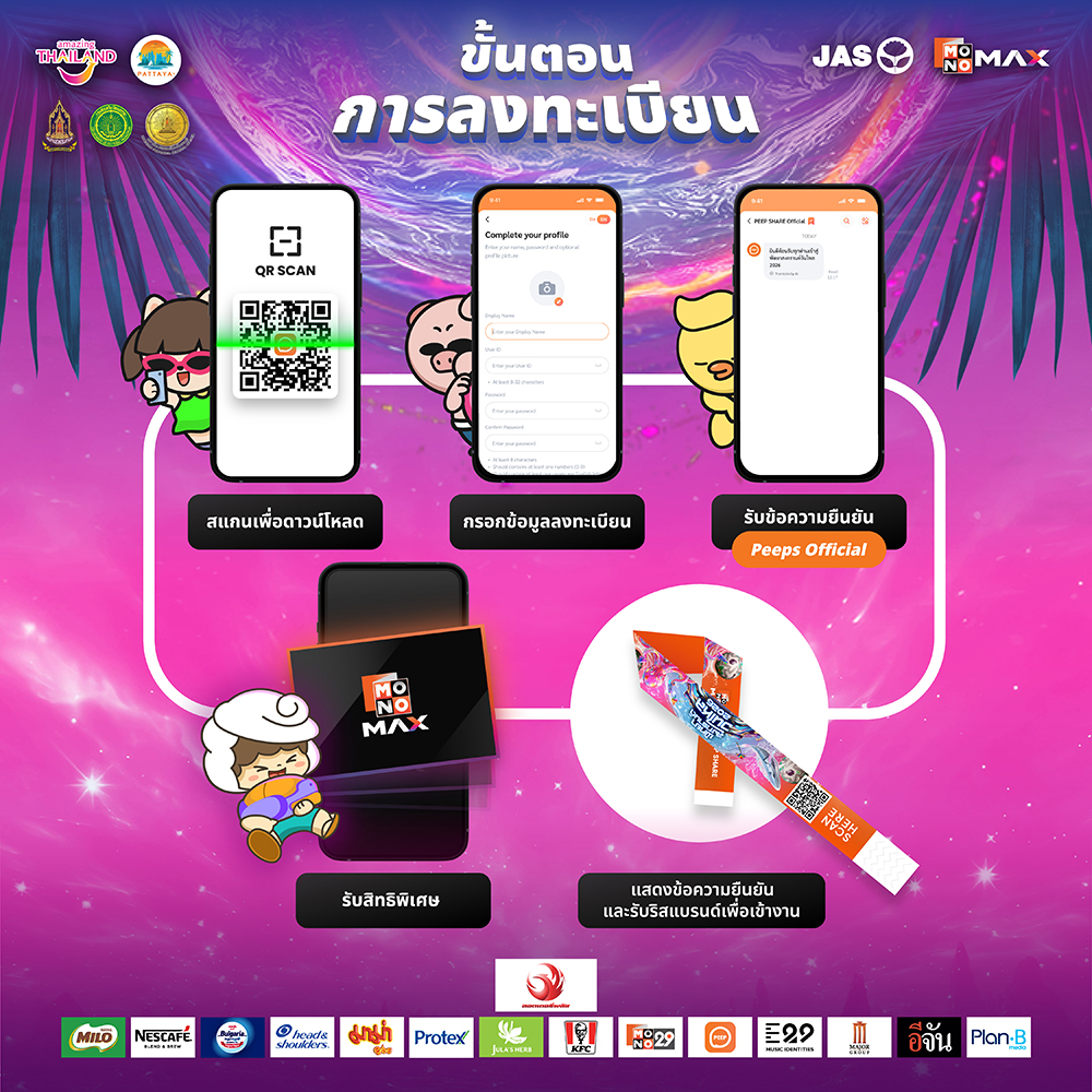 สำหรับนักท่องเที่ยวสามารถลงทะเบียนเข้าร่วมงานวันไหลพัทยา 2026 ล่วงหน้า ผ่านแอปพลิเคชัน PEEP SHARE โดยสแกน QR Code เพื่อดาวน์โหลดได้ทันที