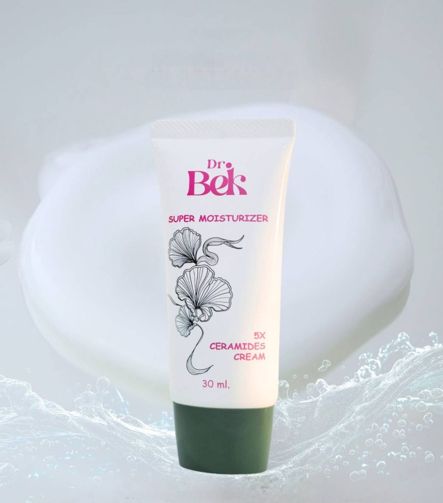 ต่อด้วยตัวช่วยล็อกผิวความชุ่มชื้นอย่างลึกล้ำ ยาวนาน 48 ชั่วโมง Dr.Bek Super Moisturizer 5X Ceramides Cream (ด๊อกเตอร์ เบค ซูเปอร์ มอยเจอร์ไรเซอร์ 5 เอ็กซ์ เซราไมด์ ครีม) ครีมบำรุงผิวที่อัดแน่นด้วยซูเปอร์มอยส์เจอไรเซอร์ พร้อมเซราไมด์เข้มข้น ถึง 5 เท่า ช่วยเสริมเกราะป้องกันให้ผิวแข็งแรง ลดการระคายเคือง ฟื้นฟูผิวไหม้แดดและผิวแห้งกร้านได้อย่างมีประสิทธิภาพ เผยผิวอิ่มฟู ดูเรียบเนียน สุขภาพดีอย่างเป็นธรรมชาติ จำหน่าย ขนาด 30 ml ราคาหลอดละ 390 บาท