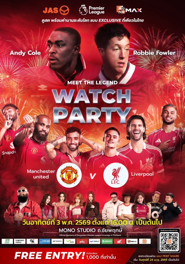 สำหรับงาน “MONOMAX WATCH PARTY: RED MATCH” จะจัดขึ้นใน วันอาทิตย์ที่ 3 พฤษภาคม ตั้งแต่เวลา 16.00 น. เป็นต้นไป ณ MONO STUDIO ถนนชัยพฤกษ์ จังหวัดนนทบุรี โดยเปิดให้เข้าร่วมงานฟรี!! จำกัดจำนวนเพียง 1,000 คนเท่านั้น ผู้สนใจสามารถลงทะเบียนล่วงหน้าผ่านแอปพลิเคชัน PEEP SHARE งานนี้นับเป็นอีกหนึ่งอีเวนต์ใหญ่ที่รวมทั้งกีฬา ดนตรี และความบันเทิงไว้ในที่เดียวอย่างครบครัน ตอกย้ำกระแสความนิยมของศึก “แดงเดือด” ที่ยังคงครองใจแฟนบอลทั่วโลก และมอบประสบการณ์การเชียร์ฟุตบอลรูปแบบใหม่ที่ยิ่งใหญ่ที่สุดครั้งหนึ่งในประเทศไทย